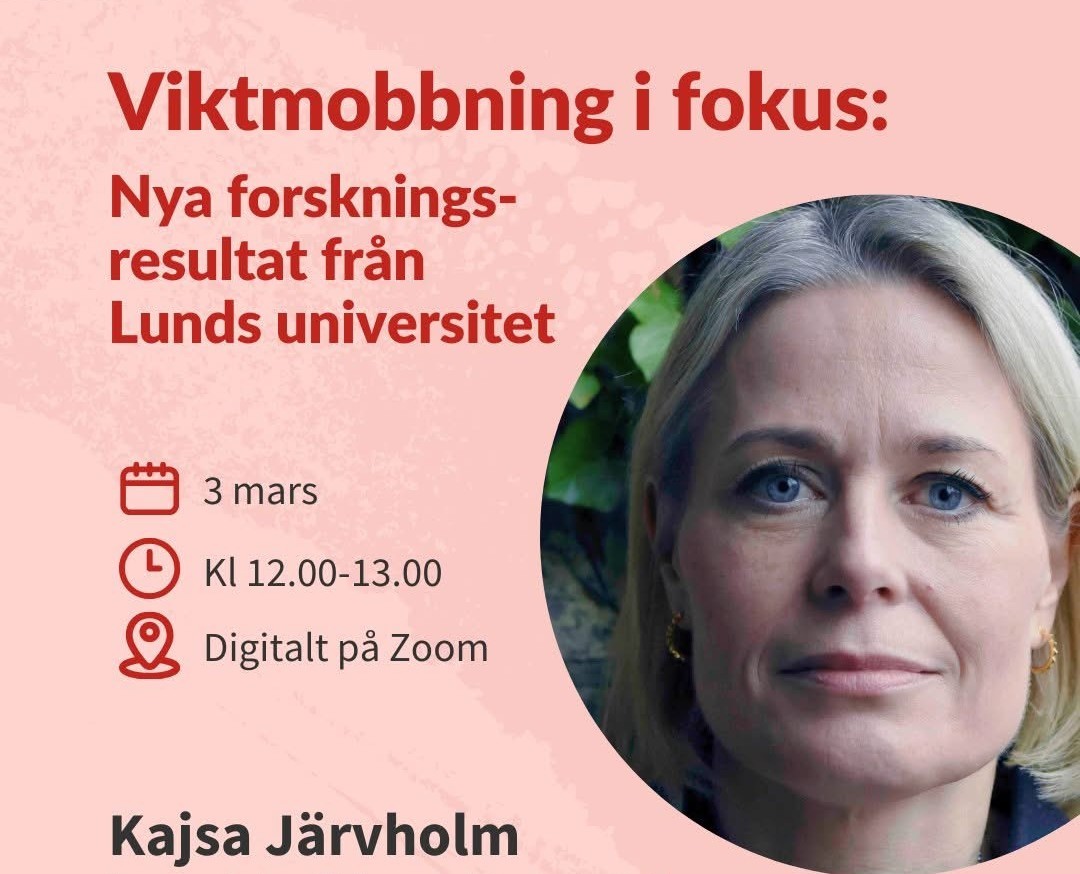 I går fick vi ta del av föreläsningen "Viktmobbning i fokus: Nya forskningsresultat från Lunds universitet". Vi hade glädjen att välkomna Kajsa Järvholm, legitimerad psykolog vid Skånes universitetssjukhus och docent i psykologi vid Lunds universitet, tillsammans med Emelie Andersson, en av studenterna som intervjuat ungdomar i studien. Deras arbete bidrar med något som länge saknats: forskning som utgår från ungas egna erfarenheter av viktmobbning.